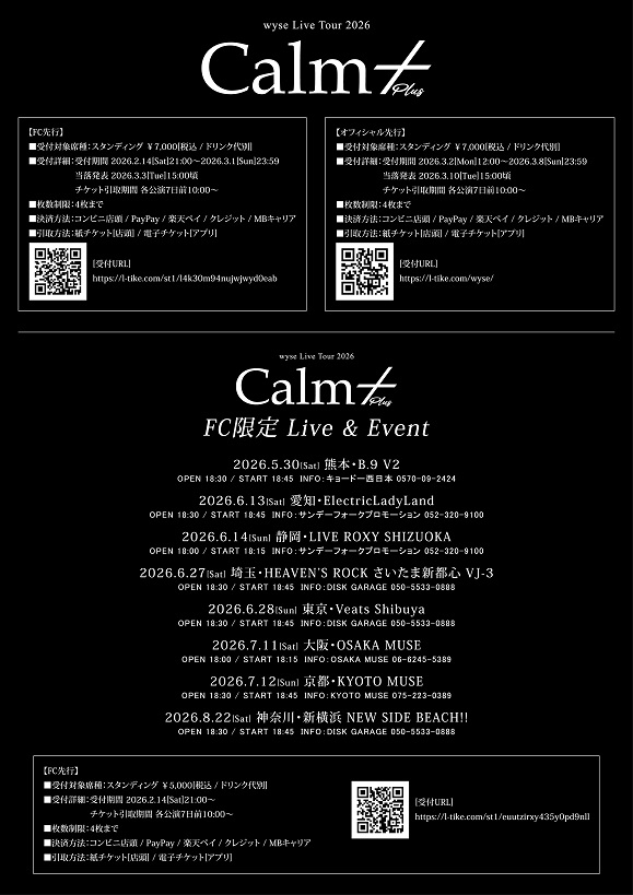 wyse Live Tour 2026「calm +」 FC限定 Live & Event